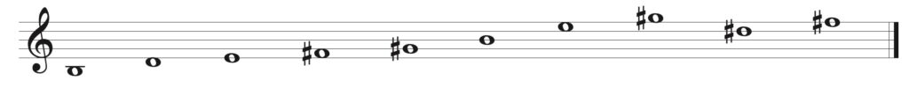 A standard pedal steel guitar has 10 strings and uses E9 tuning. This tuning system was developed by a few prominent players, including Buddy Emmons. It is called E9 tuning, as it generally resembles the notes of an E9 chord, though notice that it has both a D natural, and a D#. Notice as well that the top two strings are actually lower in pitch than the third string from the top. One of the things that is fairly convenient about the tuning system is it features four consecutive strings that form a major triad (strings 3 through 6 – with 10 being the lowest string).